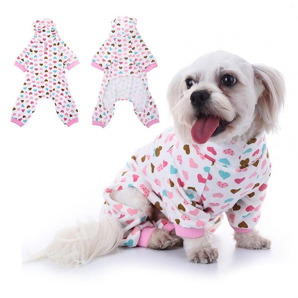 pet dog cat highneck cotton pajamas leisure & durable jumpsuit with love-heart pattern apparel