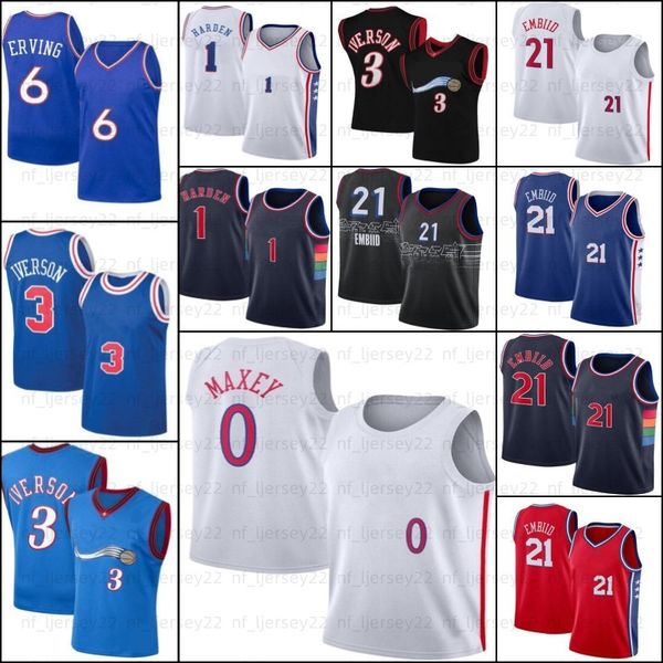 philadelphias 76er 1 james harden jersey joel 21 embiid basketball tyrese 0 maxey throwback 3 allen julius iverson erving men, Black;red