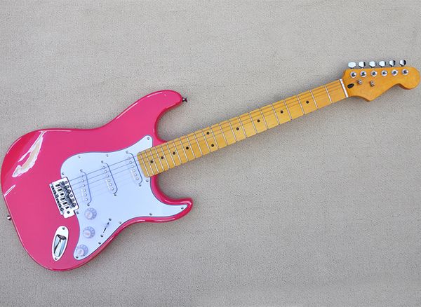 pink relic electric guitar with yellow maple fretboard sss pickups customizable