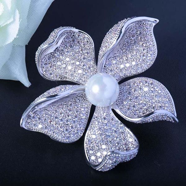 pins, brooches fashion luxury flower brooch for woman coat accessories cubic zirconia pins jewelry christmas gift, Gray