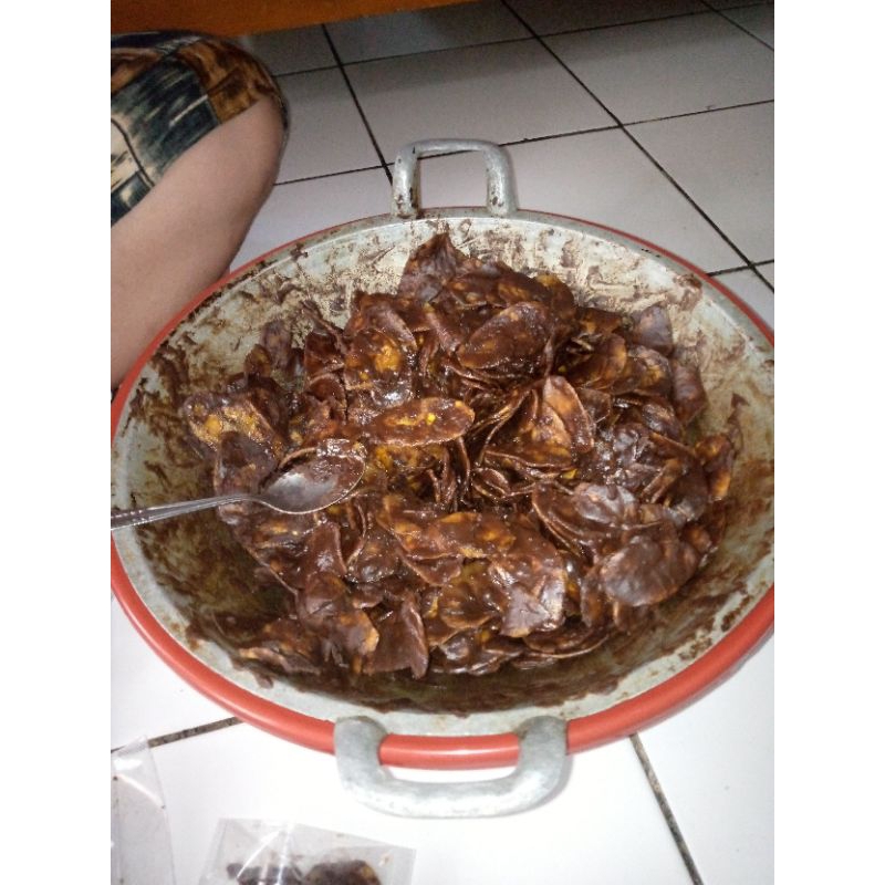 kerpik pisang,dibalut dengan coklat, rasa manis,