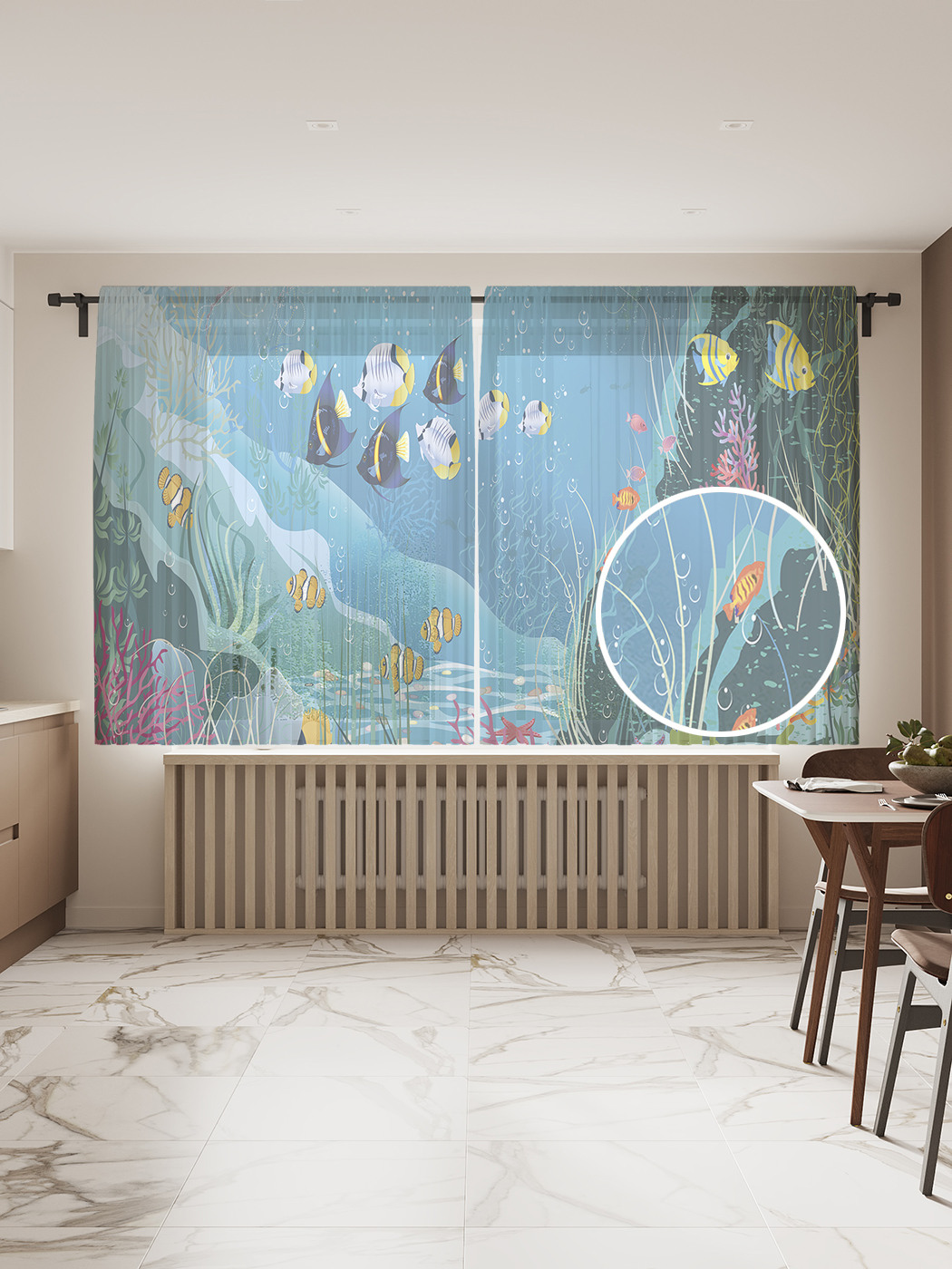 Фототюль JoyArty "Гуляя по морскому дну" 145x180см, 2 полотна, лента, 50 крючков, Гуляя по морскому дну