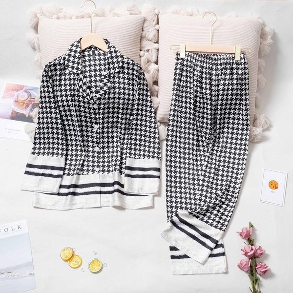 plaid print fashion women pajama sleepwears set long sleeve suit satin soft touch sleepwear, Black;red