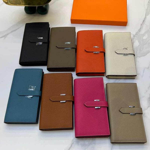 plain long wallet hand clutch purse fold wallets genuine leather fahsion letters silver hardware multiple colors inside banknote holder cred, Red;black