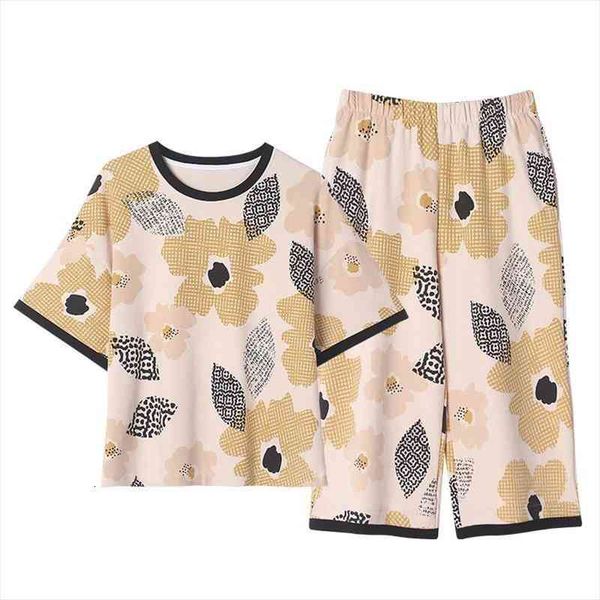 pliktea summer womens pajamas plus size home clothes suits with shorts female lounge wear printed cotton pijama set, Black;red