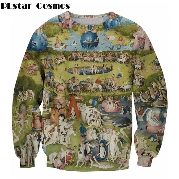plstar cosmos garden sweatshirt eur religion art painting print sweatshirt men women long sleeve outerwear crewneck pullovers lj201103, Black