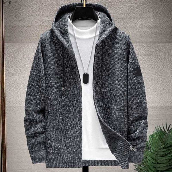 plus fleece thick coat large size fashion trend sweater autumn and winter new hooded cardigan men's zipper knit stone llug, White;black