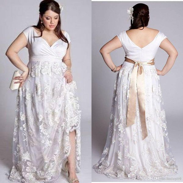 plus size 2019 wedding dresses off shoulder lace appliqued bridal gowns boho vestidos de novia backless country beach wedding dress custom, White