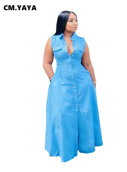 plus size dresses cm yaya women size dress solid sleeveless turn down collar single breasted a line maxi long with pockets summer 230328, Black