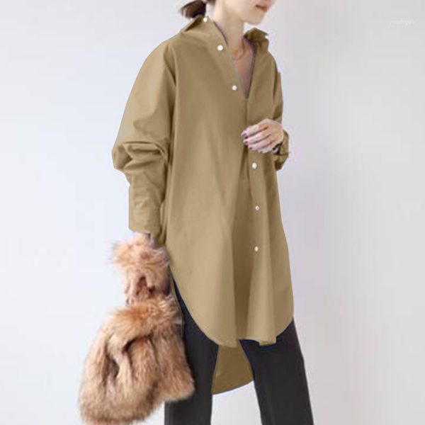 plus size fashion split shirt women's spring blouse zanzea 2020 casual long sleeve irregular blusas female button tunic 5xl1, White