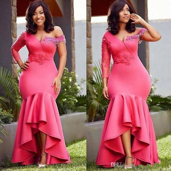 plus size high low african mermaid evening wear dresses with applique asymmetrical one shoulder prom formal party dress, Black;red