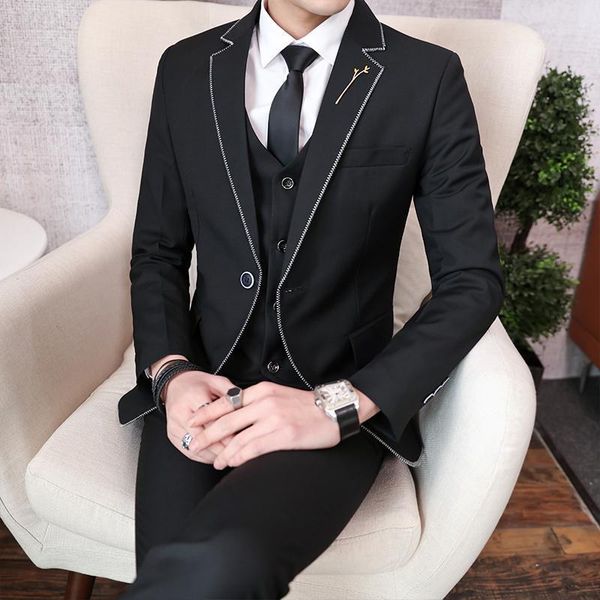 polyester suit men's casual handsome groom dress slim korean version of the british gentleman three-piece suits & blazers, White;black