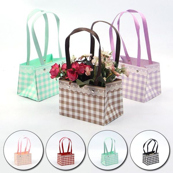 portable foldable rectangular flower box plaid lace pattern paper packaging bag wedding bouquet basket gift wrapping wrap