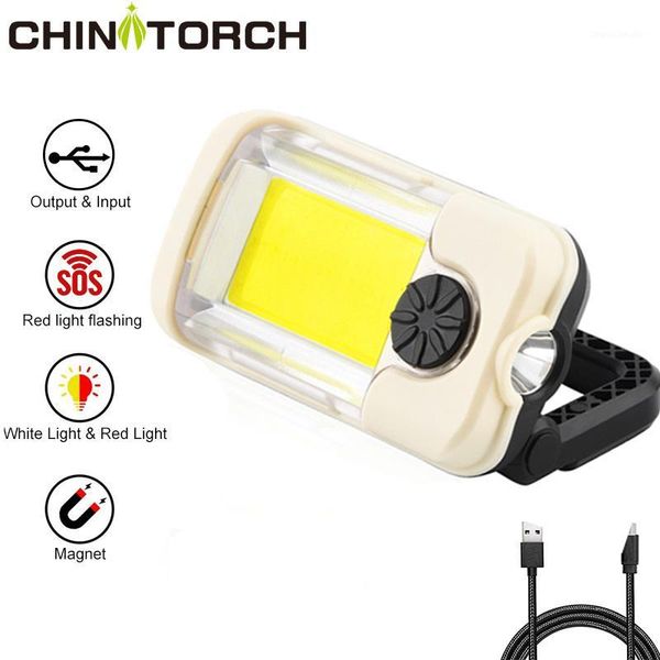portable lanterns led rechargeable work light magnetic cob lamp red hanging hook torch for car repair camp hunt1