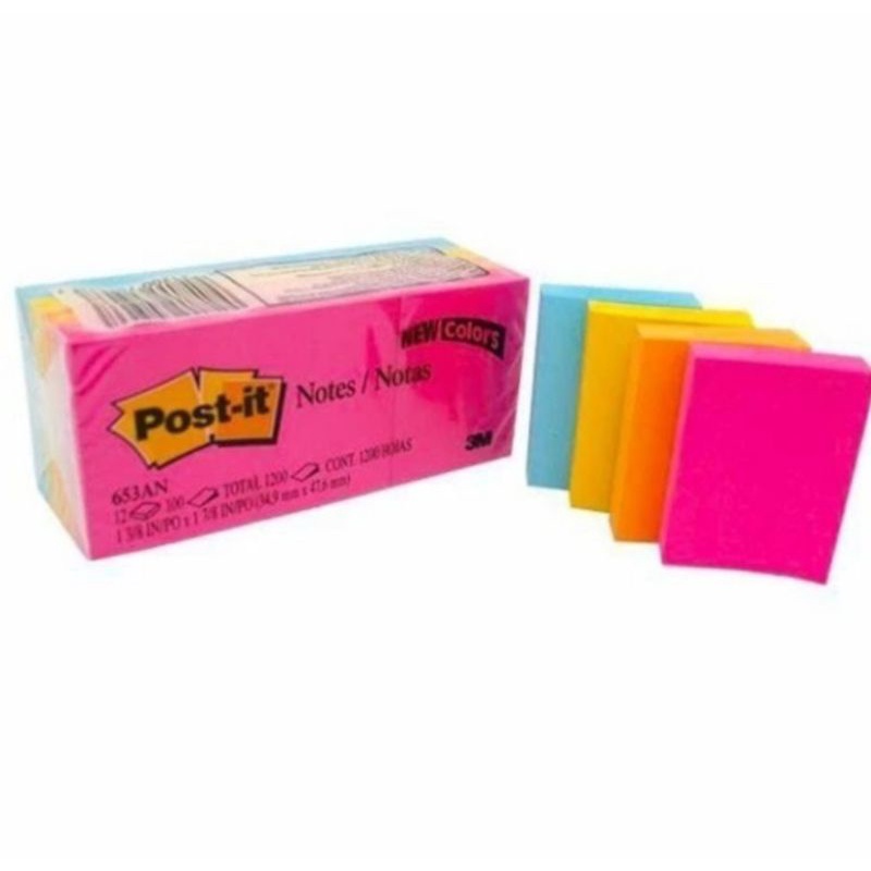 3M POST IT 653-AN NEON COLOUR adalah Post It warna neon 653 cocok untuk ditempel di kertas maupun di permukaan yang miring sekalipun seperti layar komputer, kaca dan dinding.