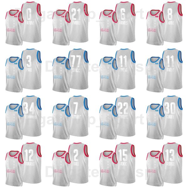 print basketball all-star 2022 basketball jersey 75th anniversary kevin durant 7 kyrie irving 11 giannis antetokounmpo 34 demar derozan 11 p, Black;red