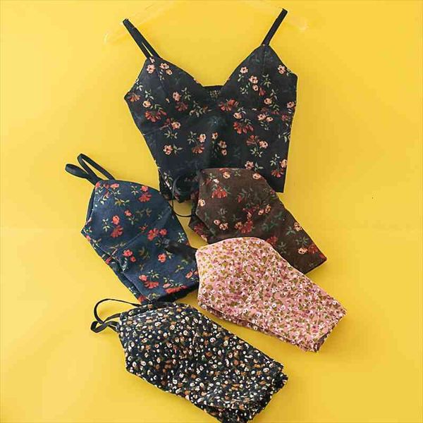 print camis for women v-neck solid vest tank spaghetti strap broken flowers slim korean womens clothes, White
