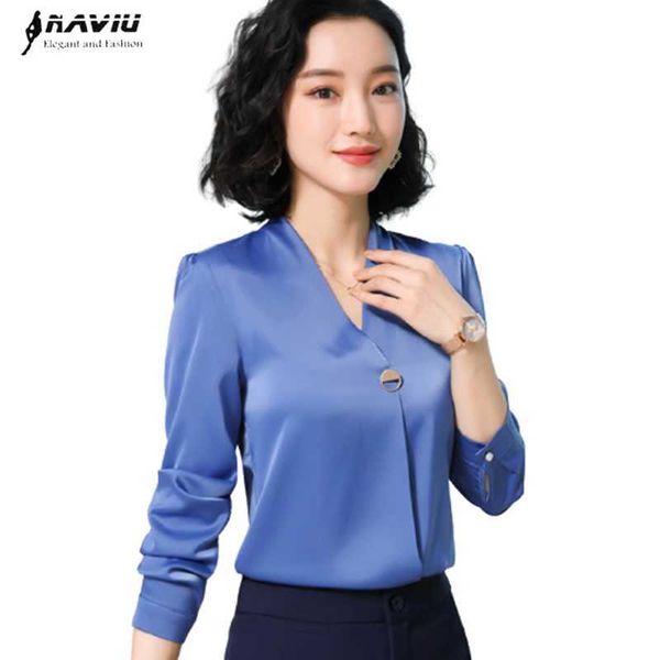 professional temperament shirt women retro spring long sleeve v neck chiffon blouses office ladies casual work 210604, White