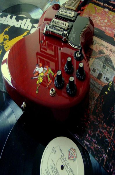 promotion black sabbath tony iommi signed legendary cheery red sg monkey electric guitar chrome mini pickups wrap around bridge8244237