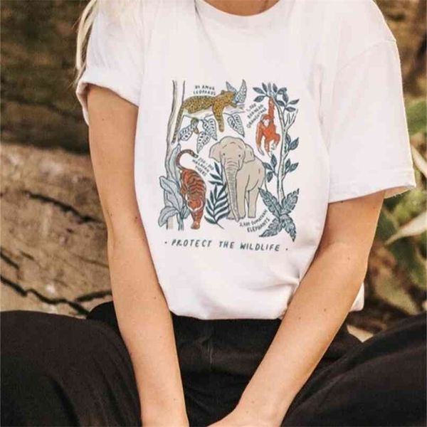 protect the wildlife letter print women's t-shirt be nice to animals tee funny graphic summer style tshirt 210512, White