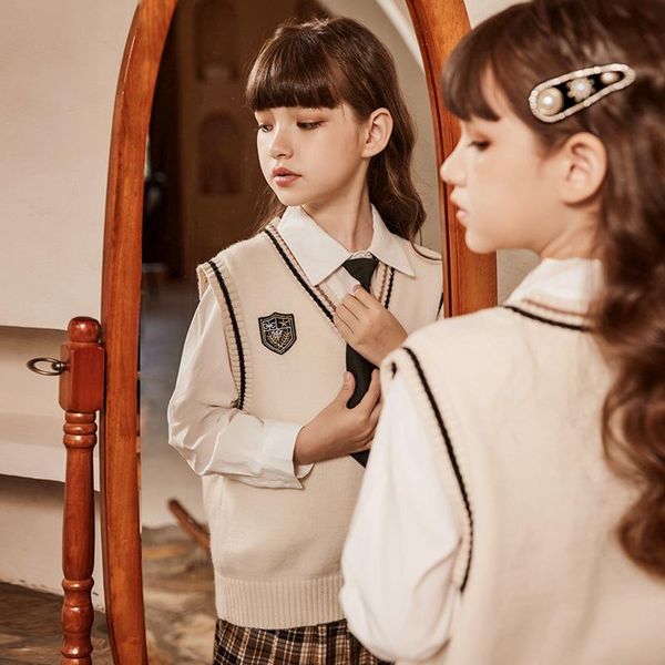 pullover autumn spring knitted sleeveless sweater for girls children soft cotton bottoming knit vest tank kids teens knitwear, Blue