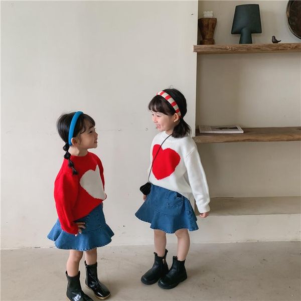 pullover sweater girl 2021 winter long sleeve warm spring knitted baby girls 1-6 years heart, Blue