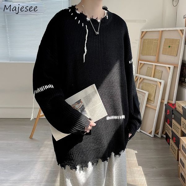 pullovers men ripped trendy irregular sweater autumn high street loose knitting print leisure chandails harajuku 220822, White;black