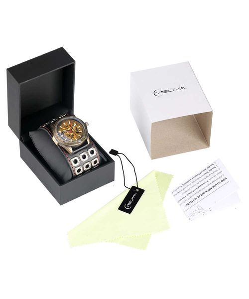 item typemechanical wristwatches movementautomatic self-wind stylefashion & casual case materialstainless steel band length25.5 clasp typebuckle water resistance depthno waterproof dial diameter42 featurenone dial window material typeacrylic model numberw434201 boxes & cases materialno package band material typeleather band width42 case thickness13 case shaperound brand nameyisuya