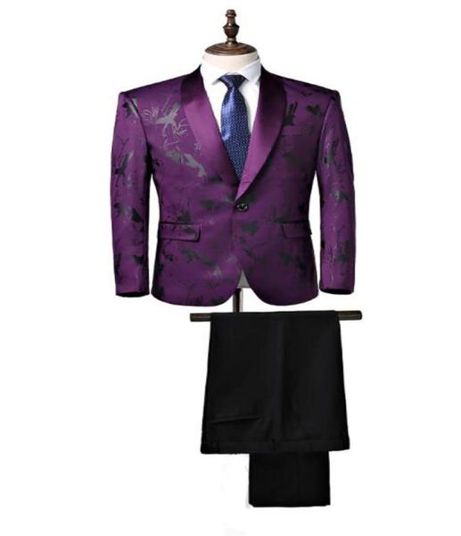 purple trim fit men suits 2 pieces jacketpants suits shawl collar suits for groom wedding tuxedos6393438, Black;gray