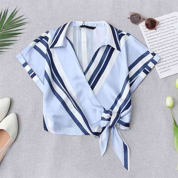 puw casual women v neck lace blouse summer fashion ladies high waist female shirt printed cropped striped 210515, White