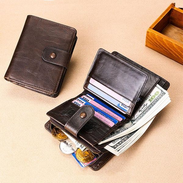 quality genuine leather men wallets small coin purse for male mini card holder fashion real skin hasp, Red;black