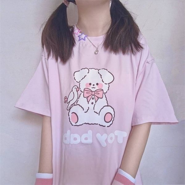 qweek graphic tee fashion kawaii tshirt women short sleeve clothes loose cartoon print cute pink casual t shirt 210623, White