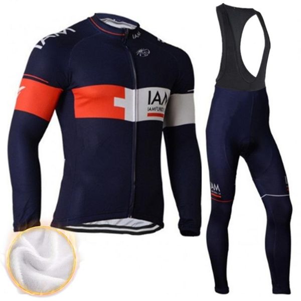 racing sets 2021 iam winter thermal fleece cycling clothing set maillot ropa ciclismo invierno mtb bicycle jerseys bike sportswear, Black;blue