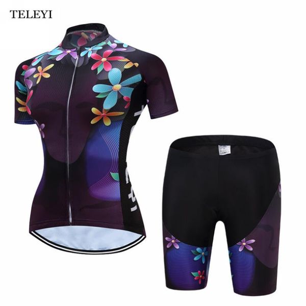 racing sets teleyi team ropa ciclismo cycling jersey women bike bicycle outdoor sports wear shirt short sleeves bib shorts set purple, Black;blue