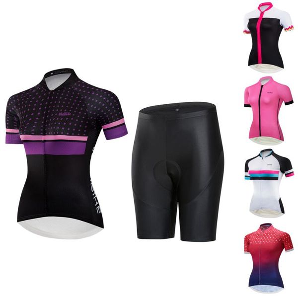 racing sets wulibike cycling jersey women's short sleeve set bicycle sport shorts suit breathable woman summer anti-uv clothes, Black;blue