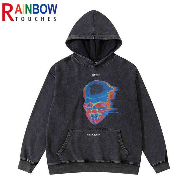 rainbowtours - men's and women's hooded sweatshirts, antique skeleton street cloth, hip-hop harajuku style, high-quality coat, Gray