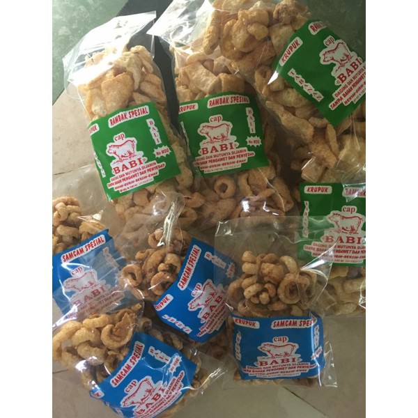Kerupuk babi cap "BABI" (non halal).