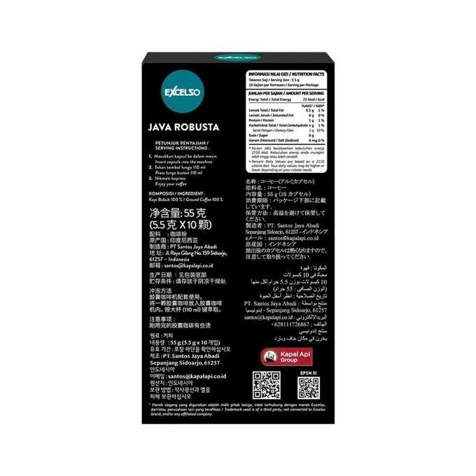 Excelso Kopi Kapsul Java Robusta merupakan kopi kapsul yang terbuat dari 100% biji kopi robusta dengan tingkat kekentalan kopi lebih ke medium / sedang.
