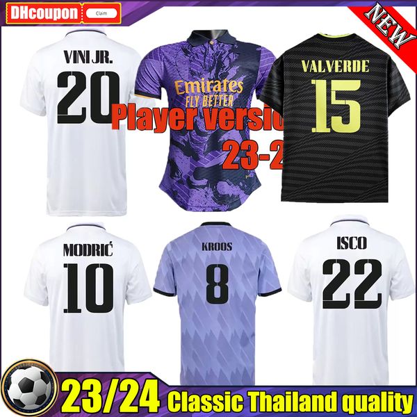 real madrids benzema thai quality soccer jerseys 23 24 player version football shirt valverde club world cup camavinga champions 23 24 camis, Black;yellow