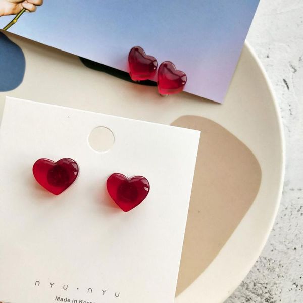 red peach earrings winter cute mini for women korea transparent wine heart love stud wholesale, Golden;silver