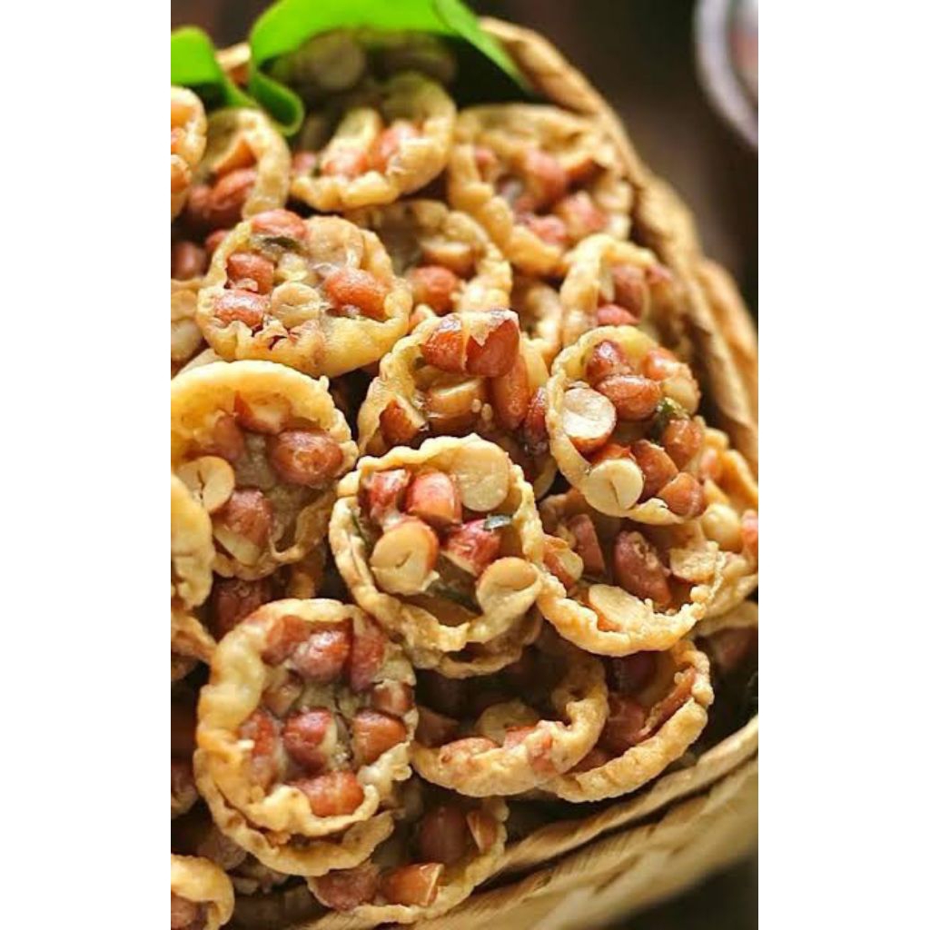makanan kering berbentuk bulat2 dengan cita rasa gurih renyak berpadu dengan kacang tanah atau kacang ijo