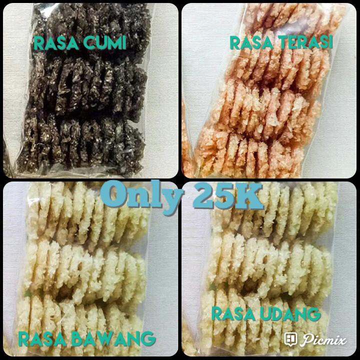 rengginang enak, gurih, lezat dan kriuk dengan varian rasa: terasi, udang, cumi dan bawang. Rengginang tinggal goreng tanpa dijemur