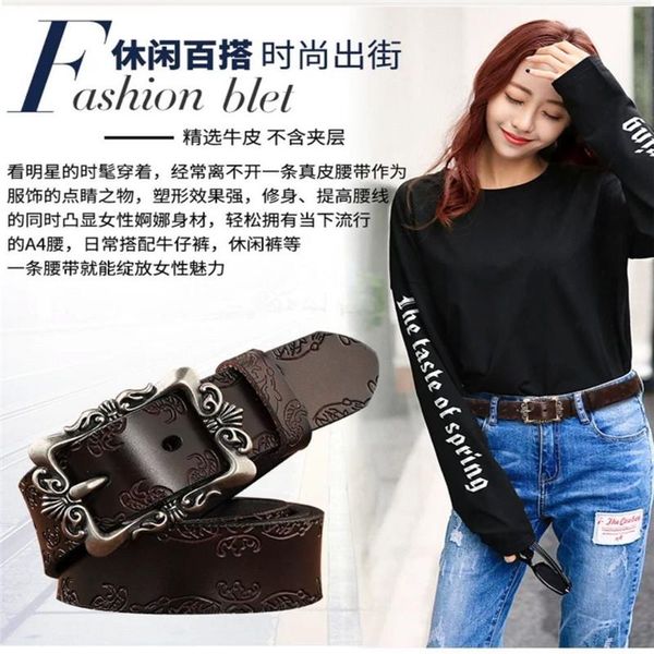 retro alloy leather pin buckle men's and women's luxury belt jeans casual business versatile belts, Black;brown