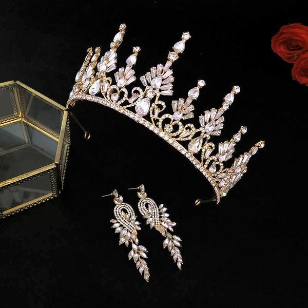 retro baroque style glitter crystal tiaras and crowns stud earrings headbands for women bridal wedding jewelry sets forseven h1022, Silver