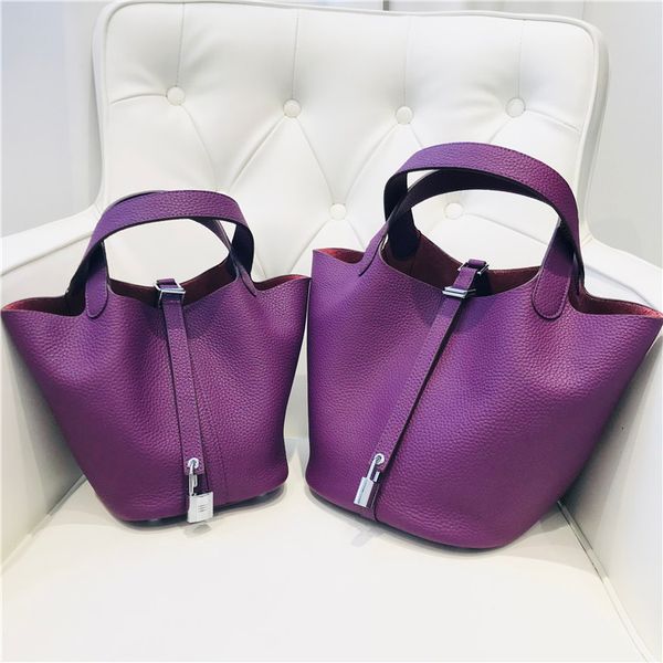 fashionable vegetable basket leather litchi pattern handbag bucket simple women's bag