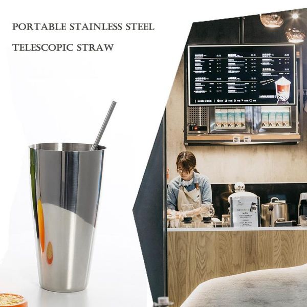 reusable folding drinking straw stainless steel retractable straw w/brush