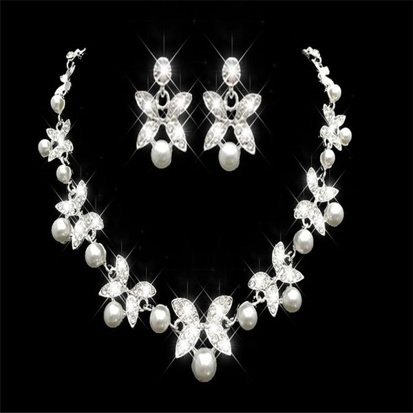 rhinestone faux pearls bridal jewelry sets earrings necklace crystal bridal prom party pageant girls wedding accessories in stock, White
