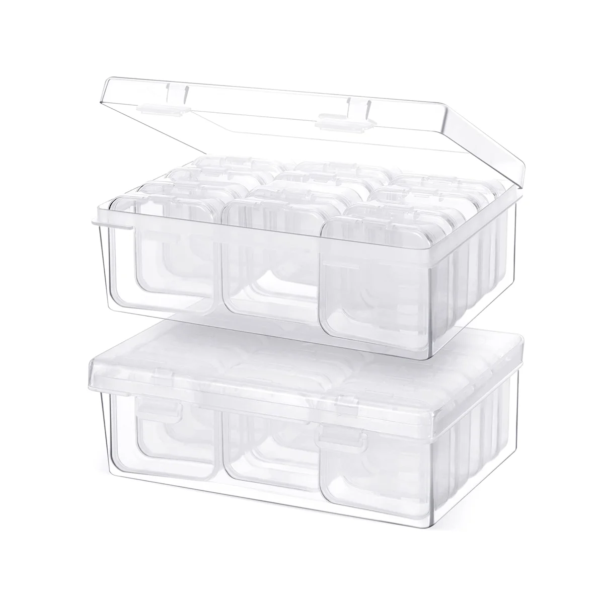 24Pc Small Bead Organizer Plastic Storage Containers Clear Storage Case Craft Containers with 2Pc Hinged Lid Craft Cases