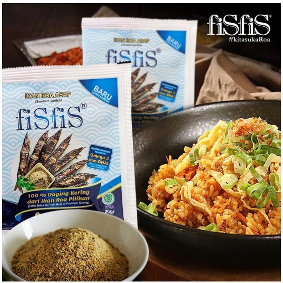 Roa Premium fiSfiS - Makan ikan jadi lebih mudah - 100% daging ikan roa asap - Dapat langsung dikomsumsi - Tanpa bumbu dan non msg - Memiliki ijin halal dan PIRT - Ikut panduan HACCP - Lezat dan bergizi Omega 3 amp; DHA - Dapat dicampur dengan nasi goreng, sambal, dabu-dabu, aglio, dll.