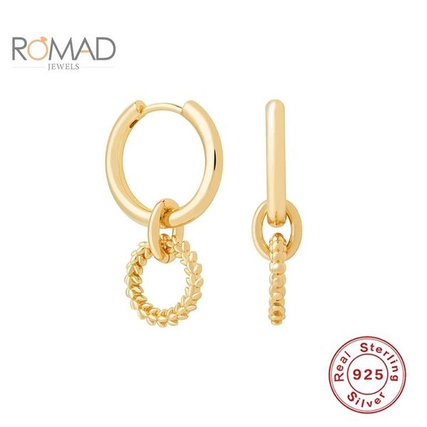 romad simple real 925 silver hoops earrings original round double layer earrings for women fashion jewelry kolczyki damskie, Golden;silver